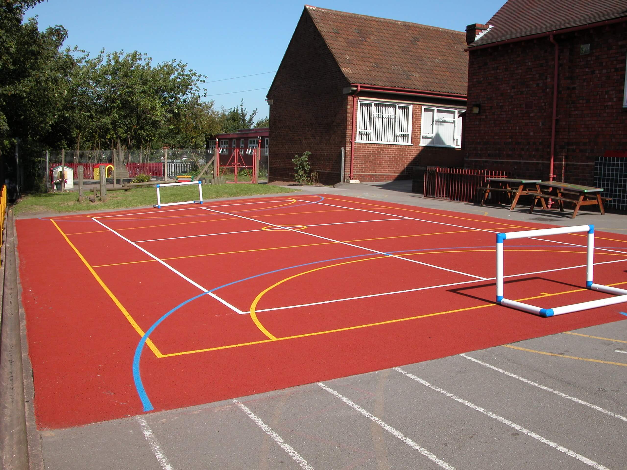 Polymeric Sports Surfacing is a popular choice for MUGAs, please see the selection of photographs below from some of our favourite projects across the UK. Different colours and line markings have been used across the sites so we hope this gives you ideas for your upcoming projects.